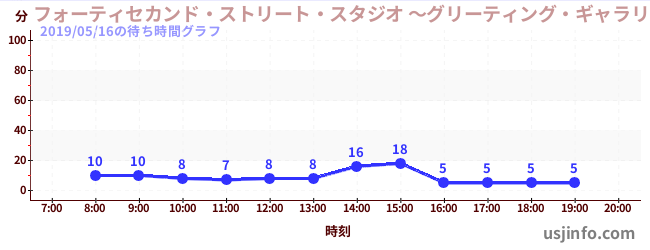 • フォーティセカンド・ストリート・スタジオ ~グリーティング・ギャラリー~ ミニオン$B$N(B2019年05月16日の待ち時間