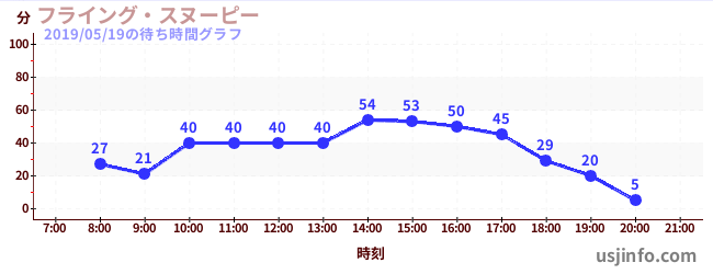 • フライング・スヌーピー$B$N(B2019年05月19日の待ち時間