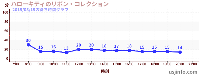• ハローキティのリボン・コレクション$B$N(B2019年05月19日の待ち時間