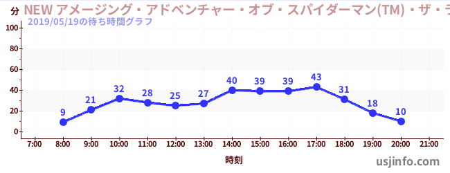 • NEW アメージング・アドベンチャー・オブ・スパイダーマン(TM)・ザ・ライド 4K3D$B$N(B2019年05月19日の待ち時間
