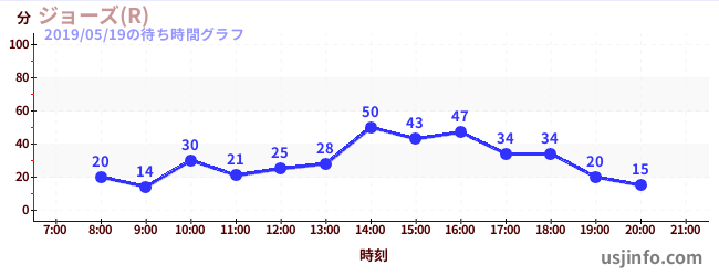 • ジョーズ(R)$B$N(B2019年05月19日の待ち時間