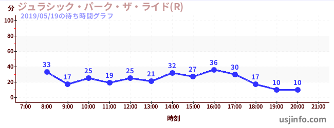 • ジュラシック・パーク・ザ・ライド(R)$B$N(B2019年05月19日の待ち時間