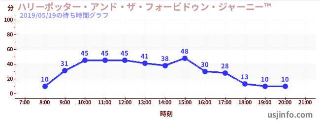 • ハリーポッター・アンド・ザ・フォービドゥン・ジャーニー™$B$N(B2019年05月19日の待ち時間