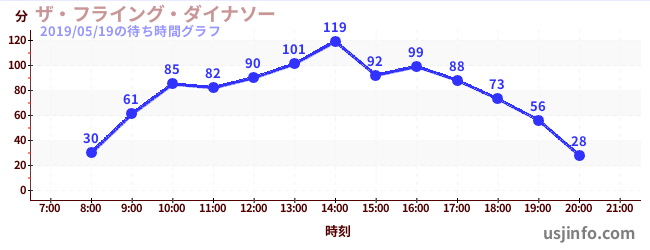 • ザ・フライング・ダイナソー$B$N(B2019年05月19日の待ち時間