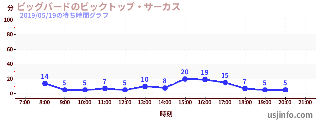 • ビッグバードのビックトップ・サーカス$B$N(B2019年05月19日の待ち時間