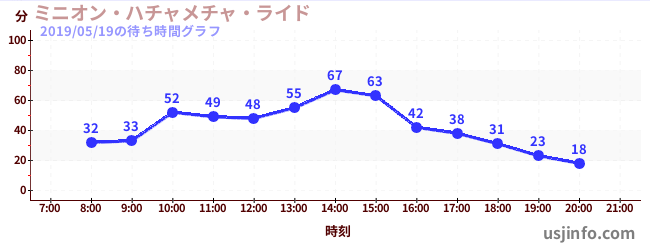 • ミニオン・ハチャメチャ・ライド$B$N(B2019年05月19日の待ち時間