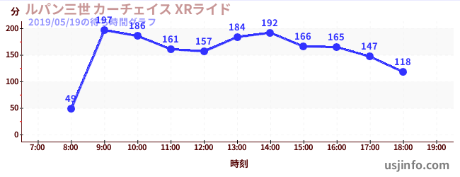 • ルパン三世 カーチェイス XRライド$B$N(B2019年05月19日の待ち時間