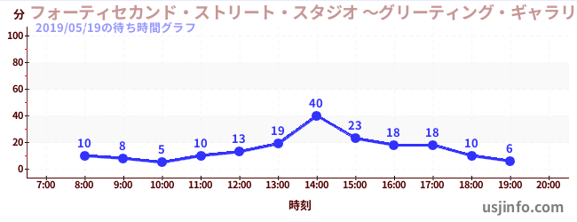 • フォーティセカンド・ストリート・スタジオ ~グリーティング・ギャラリー~ ミニオン$B$N(B2019年05月19日の待ち時間