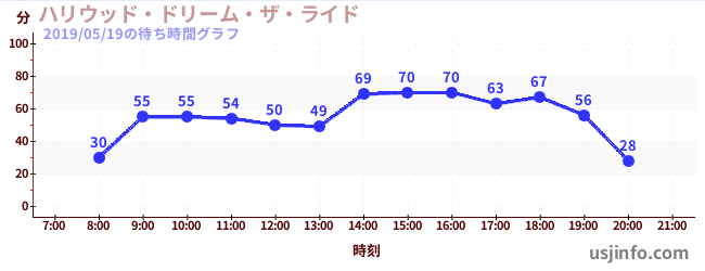 • ハリウッド・ドリーム・ザ・ライド$B$N(B2019年05月19日の待ち時間