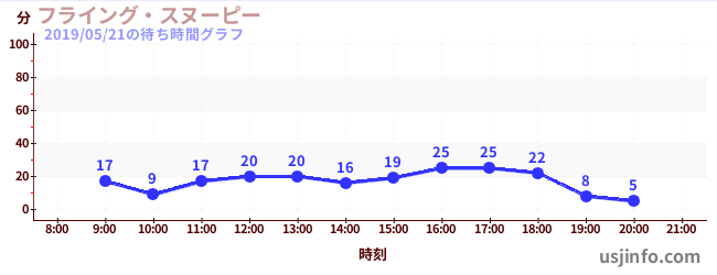 • フライング・スヌーピー$B$N(B2019年05月21日の待ち時間