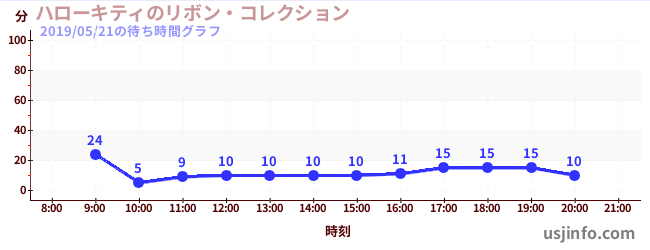 • ハローキティのリボン・コレクション$B$N(B2019年05月21日の待ち時間
