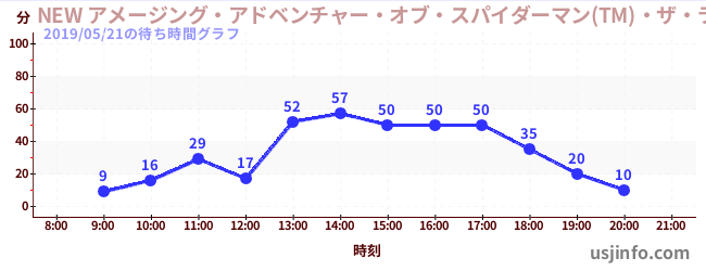 • NEW アメージング・アドベンチャー・オブ・スパイダーマン(TM)・ザ・ライド 4K3D$B$N(B2019年05月21日の待ち時間