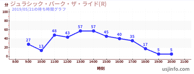 • ジュラシック・パーク・ザ・ライド(R)$B$N(B2019年05月21日の待ち時間