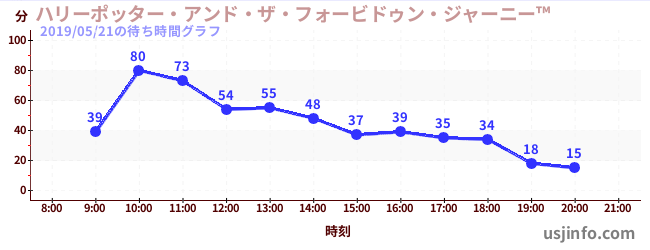 • ハリーポッター・アンド・ザ・フォービドゥン・ジャーニー™$B$N(B2019年05月21日の待ち時間