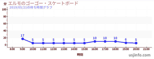 • エルモのゴーゴー・スケートボード$B$N(B2019年05月21日の待ち時間