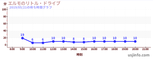 • エルモのリトル・ドライブ$B$N(B2019年05月21日の待ち時間