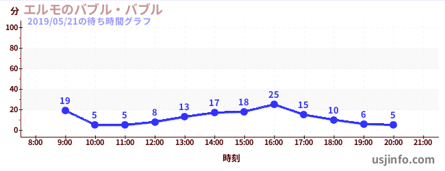 • エルモのバブル・バブル$B$N(B2019年05月21日の待ち時間