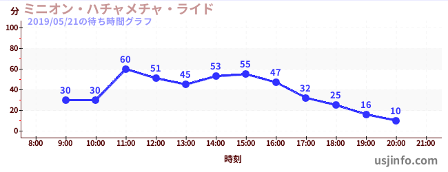 • ミニオン・ハチャメチャ・ライド$B$N(B2019年05月21日の待ち時間
