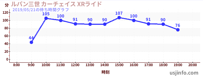 • ルパン三世 カーチェイス XRライド$B$N(B2019年05月21日の待ち時間