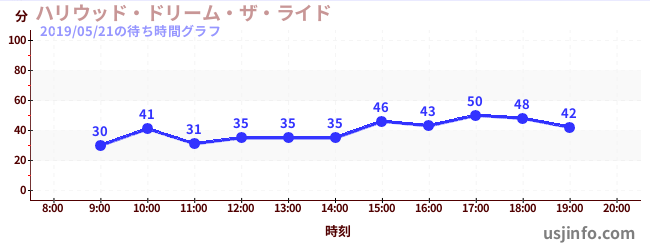 • ハリウッド・ドリーム・ザ・ライド$B$N(B2019年05月21日の待ち時間
