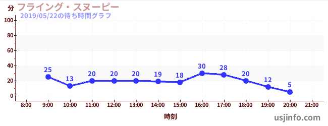 • フライング・スヌーピー$B$N(B2019年05月22日の待ち時間