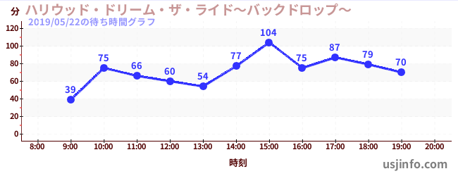 • ハリウッド・ドリーム・ザ・ライド〜バックドロップ〜$B$N(B2019年05月22日の待ち時間