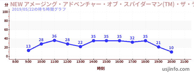 • NEW アメージング・アドベンチャー・オブ・スパイダーマン(TM)・ザ・ライド 4K3D$B$N(B2019年05月22日の待ち時間