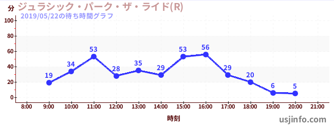 • ジュラシック・パーク・ザ・ライド(R)$B$N(B2019年05月22日の待ち時間