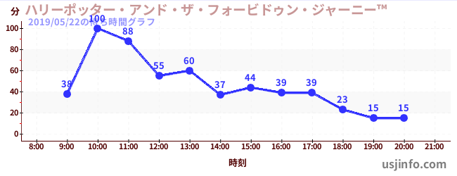 • ハリーポッター・アンド・ザ・フォービドゥン・ジャーニー™$B$N(B2019年05月22日の待ち時間