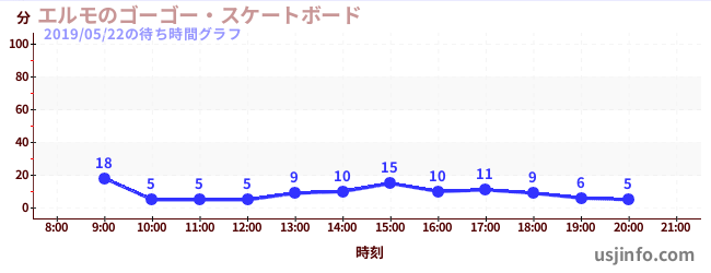• エルモのゴーゴー・スケートボード$B$N(B2019年05月22日の待ち時間