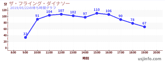 • ザ・フライング・ダイナソー$B$N(B2019年05月22日の待ち時間