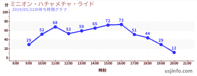 • ミニオン・ハチャメチャ・ライド$B$N(B2019年05月22日の待ち時間