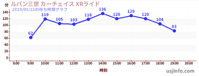 • ルパン三世 カーチェイス XRライド$B$N(B2019年05月22日の待ち時間