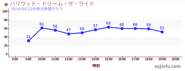 • ハリウッド・ドリーム・ザ・ライド$B$N(B2019年05月22日の待ち時間