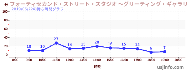 • フォーティセカンド・ストリート・スタジオ ~グリーティング・ギャラリー~ ミニオン$B$N(B2019年05月22日の待ち時間