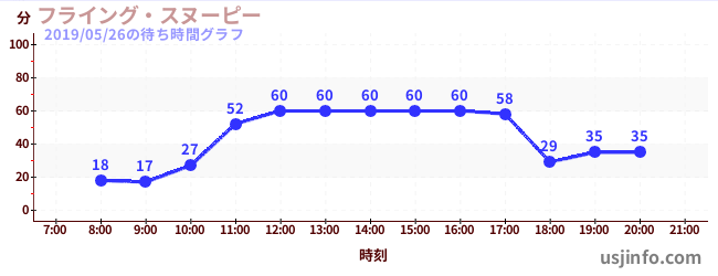 • フライング・スヌーピー$B$N(B2019年05月26日の待ち時間