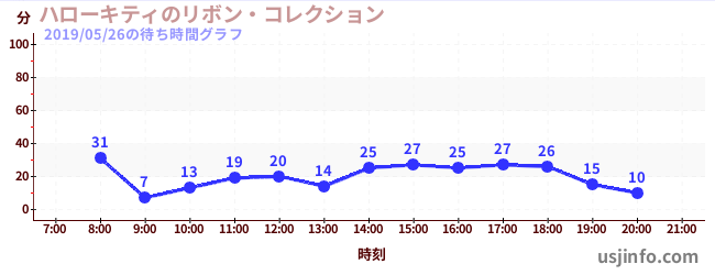 • ハローキティのリボン・コレクション$B$N(B2019年05月26日の待ち時間