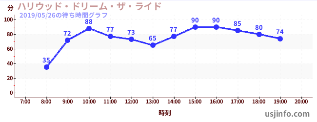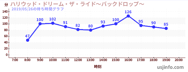 • ハリウッド・ドリーム・ザ・ライド$B$N(B2019年05月26日の待ち時間