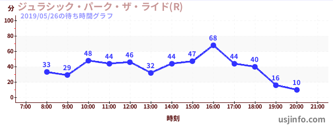 • ジュラシック・パーク・ザ・ライド(R)$B$N(B2019年05月26日の待ち時間