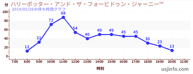 • ハリーポッター・アンド・ザ・フォービドゥン・ジャーニー™$B$N(B2019年05月26日の待ち時間