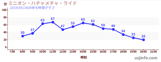 • ミニオン・ハチャメチャ・ライド$B$N(B2019年05月26日の待ち時間