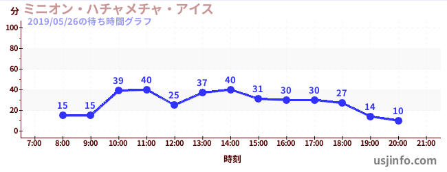 • ミニオン・ハチャメチャ・アイス$B$N(B2019年05月26日の待ち時間