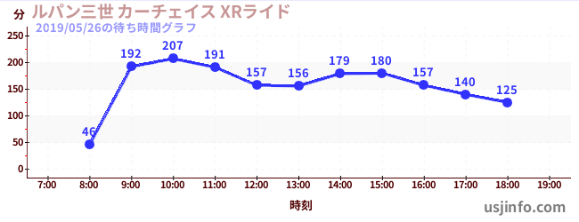 • ルパン三世 カーチェイス XRライド$B$N(B2019年05月26日の待ち時間