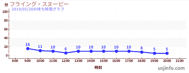 • フライング・スヌーピー$B$N(B2019年05月28日の待ち時間