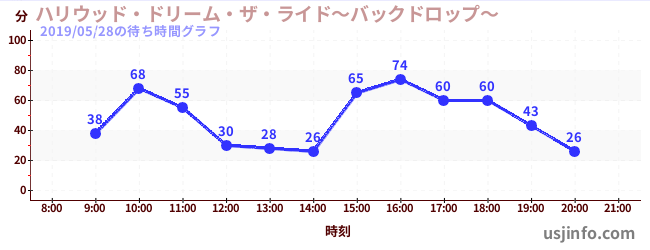 • ハリウッド・ドリーム・ザ・ライド〜バックドロップ〜$B$N(B2019年05月28日の待ち時間