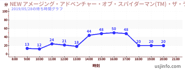 • NEW アメージング・アドベンチャー・オブ・スパイダーマン(TM)・ザ・ライド 4K3D$B$N(B2019年05月28日の待ち時間