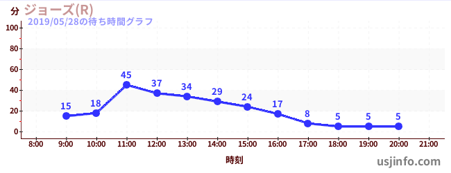 • ジョーズ(R)$B$N(B2019年05月28日の待ち時間
