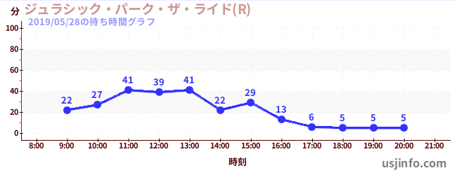 • ジュラシック・パーク・ザ・ライド(R)$B$N(B2019年05月28日の待ち時間