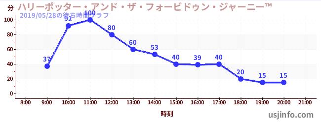 • ハリーポッター・アンド・ザ・フォービドゥン・ジャーニー™$B$N(B2019年05月28日の待ち時間
