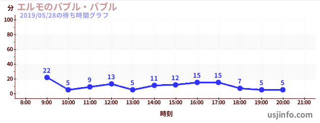 • エルモのバブル・バブル$B$N(B2019年05月28日の待ち時間